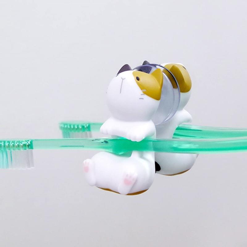 歯ブラシを挟むと、ネコが歯ブラシを抱えているように見えるホルダー。