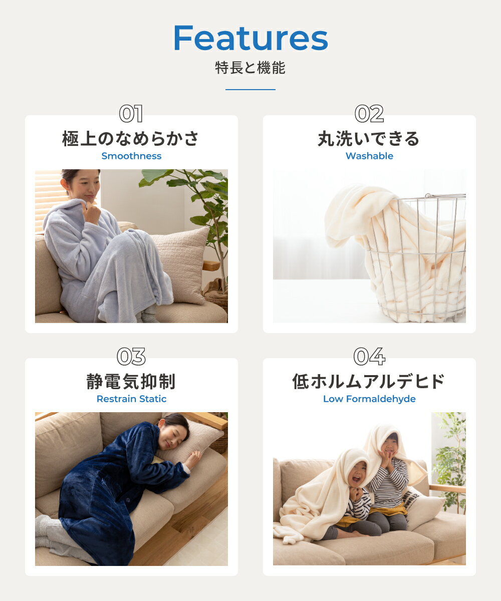 ■特長 大人気のmofuaプレミアムマイクロファイバー着る毛布に今年も新柄が登場!なめらかな肌ざわりとあったかさに癒される着る毛布は冬のマストアイテムです。